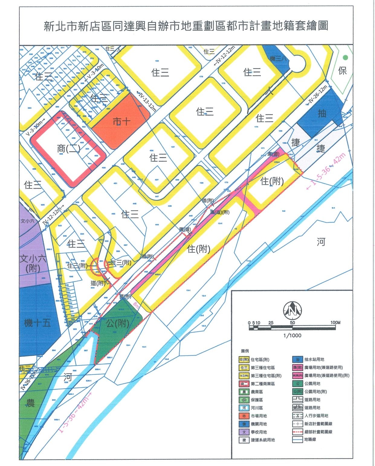 (三)113年8月8日發布實施細部計畫【變更新店都市計畫(第二次通盤檢討)(第三階段)(同達興單元)細部計畫案】。(備註:本案辦理市地重劃作業時,因部分既有雨水下水道管線穿越本案所劃設之住宅區,造成住宅區開發受限及後續下水道系統管理維護之問題,故本次配合管線位置調整土地使用計畫,以維持既有下水道設施,避免影響地方排水使用,同時以利本案工程施作遂行。故在公共設施比例不變之前提下,調整「住宅區(附)」及「廣場用地(兼供道路使用)(附)」之範圍,以利後續住宅區開發及雨水下水道系統管理維護。)